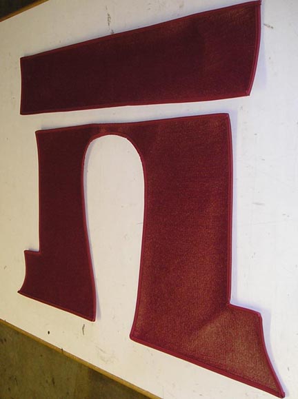 All XK models used Wilton carpet, with hardura panels. Hardura is a grained vinyl material with a jute backing. Carpet sets include all the pieces originally supplied. Each piece is vinyl bound as original. Heel pads are in the correct position and are the correct shape. Order under padding separately.