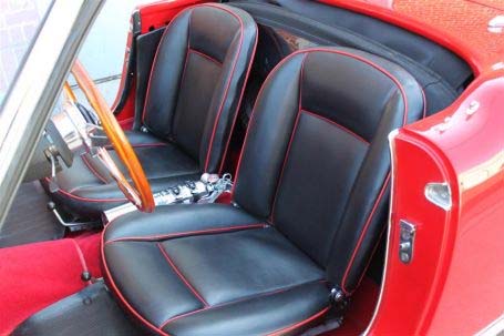 World Upholstery's front seat kit includes all the seat upholstery necessary to replace the original seat covers for both front seats. They can be manufactured using either Italian Vinyl (original material), Italian Leather (upgrade), German Vinyl (alternative imported material) or Domestic Vinyl (alternative American material). If desired, we can use contrasting welt (like the black/red contrast seen in the picture above) for all 3 seat kits or we can use 2-tone (as seen in the picture above) for the Giulietta Sprint seat kit.