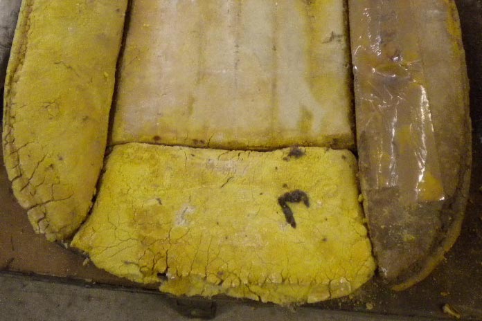 A. Most automobile seats are comprised of 3 major components. 1. steel frame or spring assembly, 2. shaped pad (either foam or rubberized horsehair) and 3. upholstery (either vinyl, cloth or leather). The shaped pad is usually the culprit. If the upholstery is still serviceable, it is possible to remove it and change the pad. Usually however both the pad and the upholstery have deteriorated and must be replaced. Skilled do-it yourselfers should have no problem with this job, most people however will find that it is best left to the professional. Be aware that reproduction or trimmer built pads may not give the same feel as factory pads.